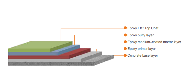Un sistema completo de recubrimiento plano epóxico sin disolventes normalmente consta de tres capas: